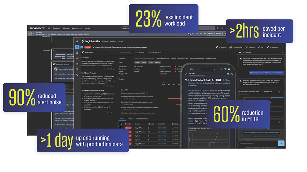 OpenAI技術を活用したAIが、同一事象に起因する複数のアラートを自動的に統合し、「ルートコーズ(根本原因)の分析」「トラブルシュート方法の提案」をリアルタイムで提供します。